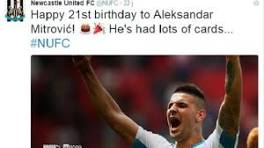 Akun Twitter Newcastle United Sindir Kartu Merah Aleksandar Mitrovic Akun Twitter Newcastle United mengucapkan selamat Ulang Tahun pada Aleksandar Mitrovic sembari menyindir banyaknya kartu yang ia terima.