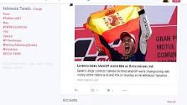 Rossi Teratas, Lorenzo Tidak SERAMBINEWS.COM, BANDA ACEH - Keyword #Rossi menempati posisi teratas yang dibicarakan pengguna Twitter di Indonesia. Hingga pukul ...