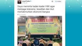 Seruan JK pada Kader HMI Justru Berbalik Menjadi Kecaman di Twitter Dalam kicauan via twitter itu tampak akun JK menampilkan foto suasana Kongres XXIX Himpunan Mahasiswa Islam (HMI) di Pekanbaru. Tampak ...