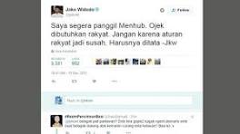 Transportasi Online Dilarang, Ridho Slank Mention Twitter Jokowi Gue juga tadi sudah mention Twitter Pak Jokowi dan bilang kalau gue dan keluarga justru merasa lebih aman menggunakan transportasi (berbasis) ...