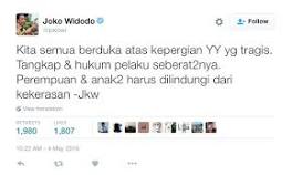 Jokowi Lewat Twitter: Tangkap dan Hukum Pelaku Seberat-beratnya Bahkan ada kalimat perintah yang dia sampaikan melalui cuitan di akun Twitter miliknya. Lewat akun Twitternya, Presiden menyebut peristiwa itu ...