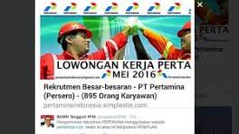 Hati-hati Penipuan! Ada Pengumuman Rekrutmen Besar-besaran Pertamina dengan Website ... Sebuah akun Twitter dengan nama BUMN Tangguh #FNI @sugianto226586 berikan peringatan pengumuman rekrutmen yang berpotensi untuk ...